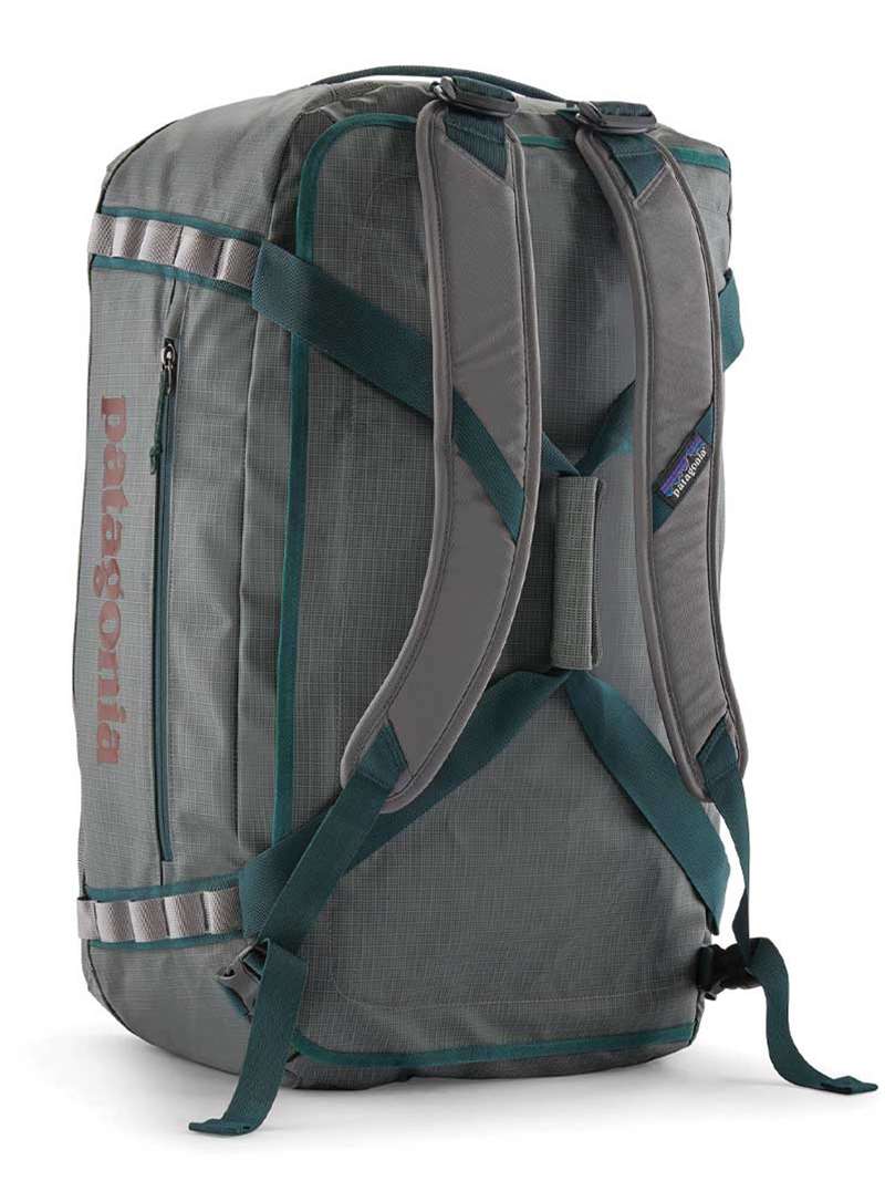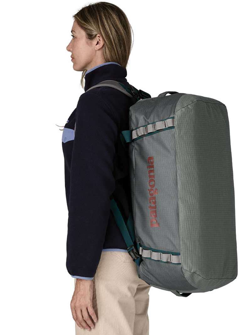 The Patagonia Black Hole Duffel Bag 55L. This workhorse organizes your gear and has enough space for a fun-hog weekend or a well-organized extended trip. Made with 100% recycled body fabric, lining and webbing.