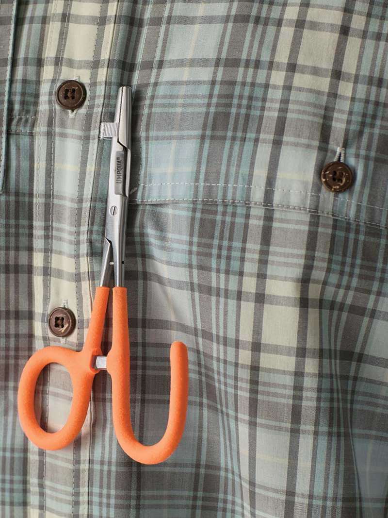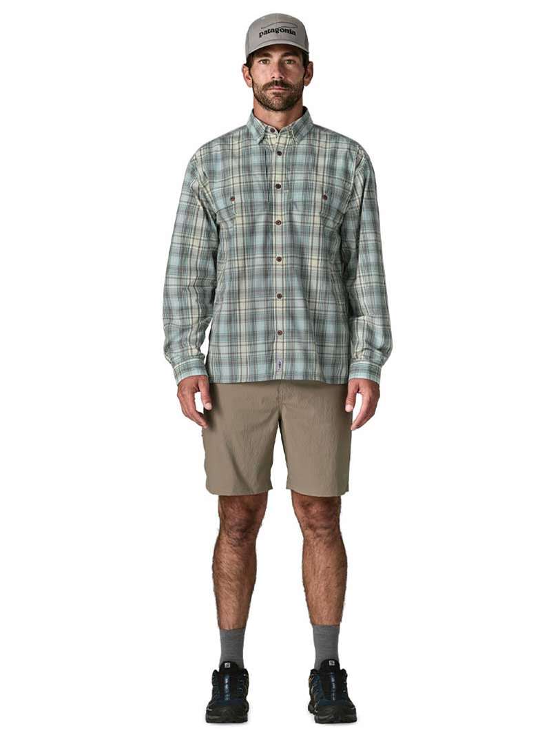 The Patagonia Men's Long-Sleeved Island Hopper Shirt is crafted from a 60% organic cotton/40% recycled polyester blend, making this the perfect hot weather shirt. It is quick-drying and lightweight, featuring reach-through chest pockets for fly boxes and passports, a hidden hemo holder, a lens cleaner and a snap collar that won’t flap in the wind.