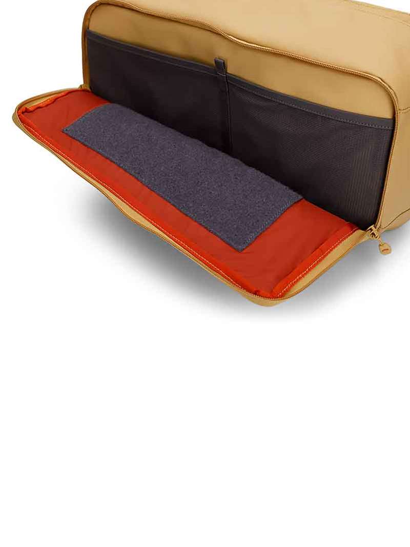 * YKK® zippered front drop-tray storage with internal and external Velcro® fly patch locations plus two internal drop-in mesh pockets