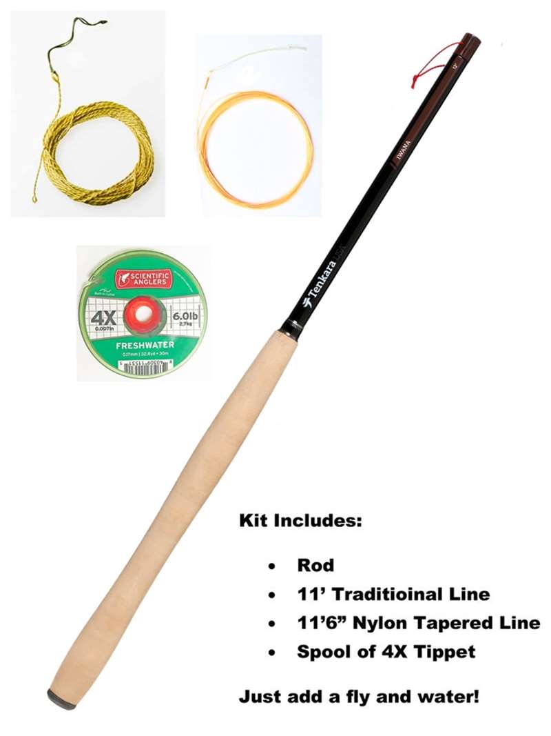 Kit Comes with: Rod and Tube, Traditional Line, Tapered Nylon Line and a spool of 4X Tippet. Everything you need to get started in Tenkara.
