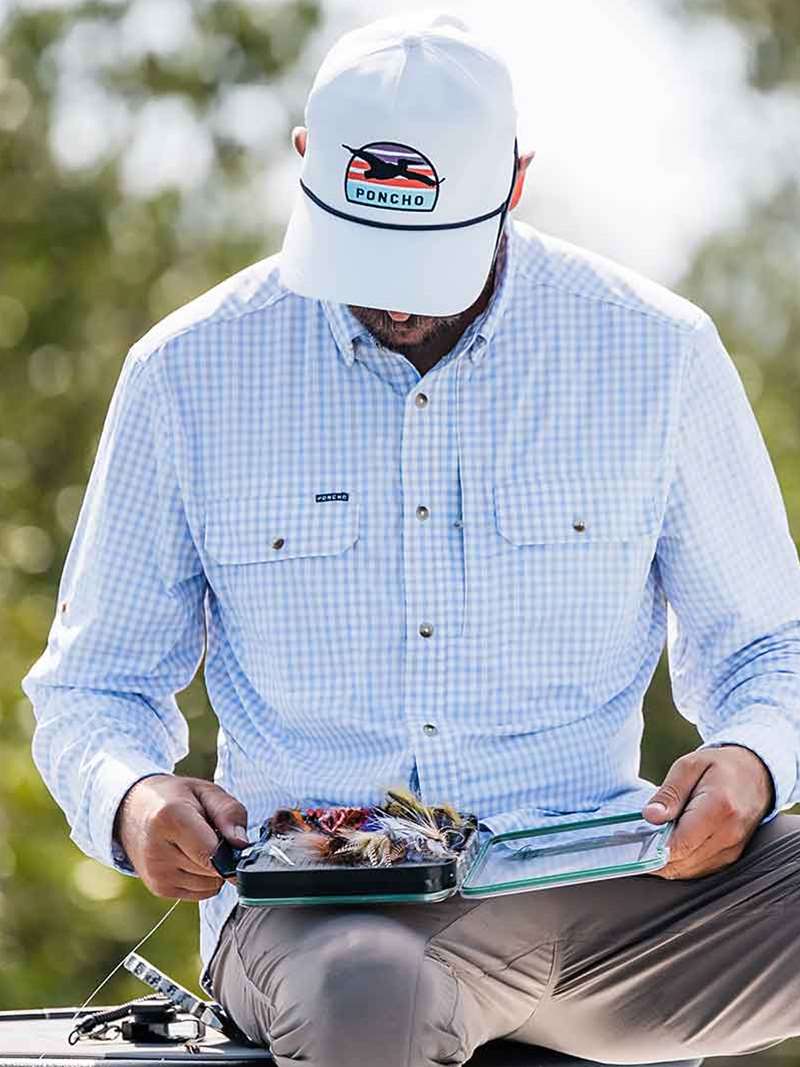 Poncho's proprietary fabric is breathable, lightweight, quick-drying, and provides built-in sun-protection so you can stay out all day. It’s got built-in stretch to keep you moving, and tons of thoughtful details born from our time spent outdoors — like a hidden zippered pocket, sunglasses holder, and more. It’s the shirt we wanted to wear, so it’s loaded with everything you need, and nothing you don’t.