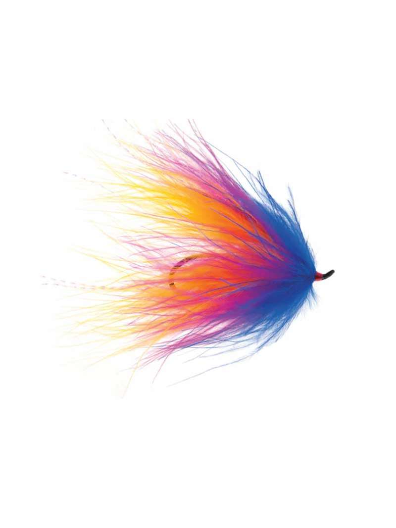 The Alaskabou is tied on a Aqua Flies Salmon/Steelhead 1/0 hook with a tinsel, krystal flash, flashabou and marabou. The fly measures 3" in length and is sold here in the Popsicle colorway.