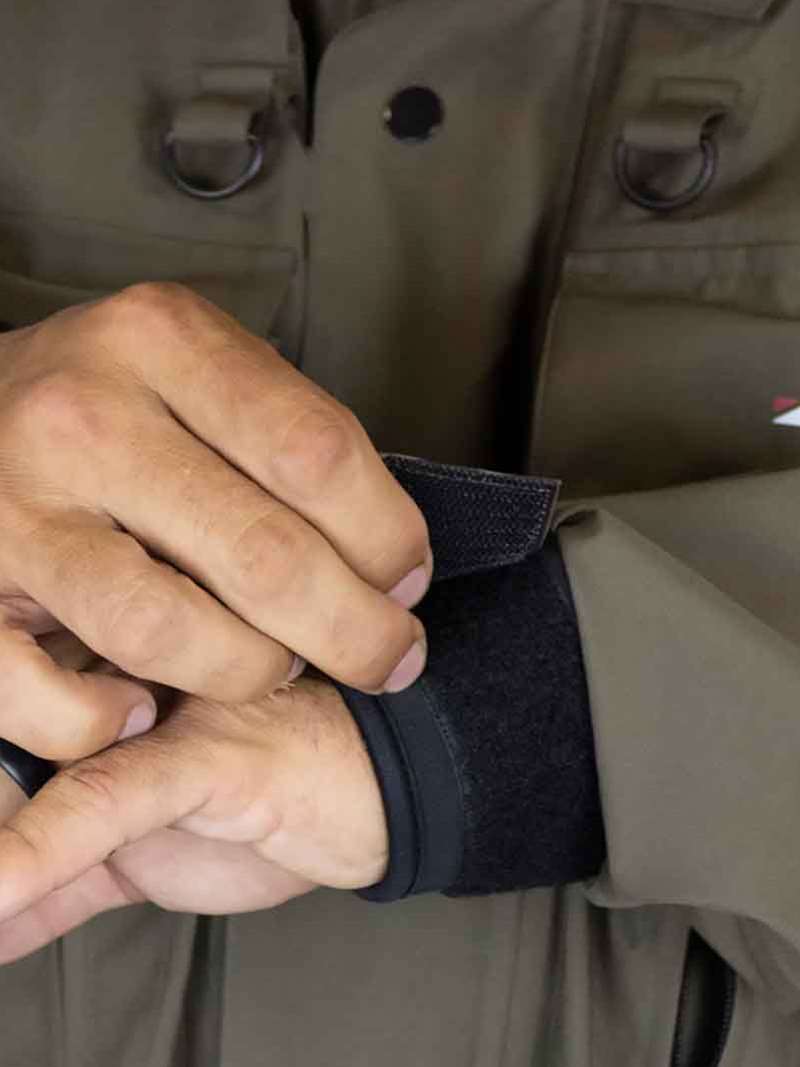 * TRUE FLY FISHING WADING JACKET DESIGN with neoprene wrist cuff for watertight protection. These cuffs are fully adjustable and help keep water from running down your arm after a release or raising your arm to fly cast.