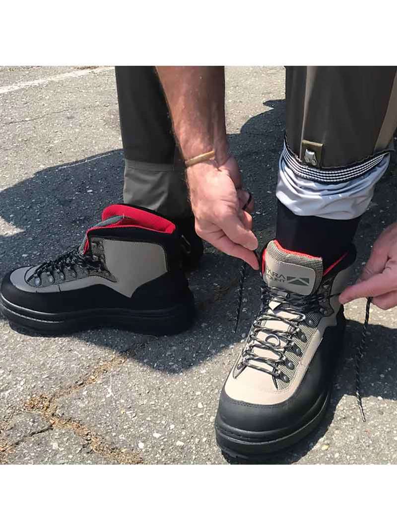 The Paramount Slate SR Sticky Rubber wading boots have superior traction, maybe more so than traditional rubber on slick rocks in cold moving water. Proven in the streams of Alaska the Sticky Rubber outsole is a noticeable performance improvement.