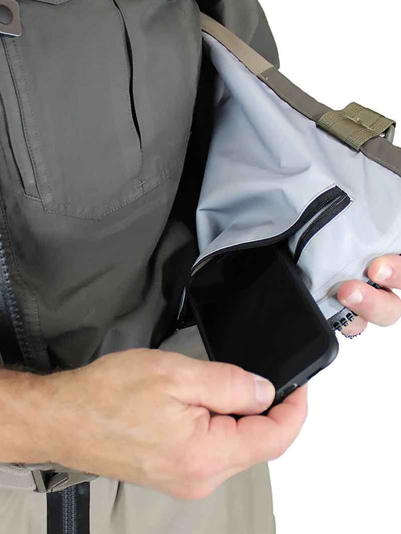 Additionally, the DEZ features 2 chest zippered fly box pockets, along with fleece lined handwarming pockets, and internal device storage pockets. Designed to be worn with wading boots, the double sealed neoprene booties are protected by a 4-ply nylon gravel guard with lace hooks. Lastly, the Deep Eddy Z features dual attachment points for quick access to fly fishing gear like nippers, or tippet. Available in SM - 2X Standard & M- 2X Stouts sizes.