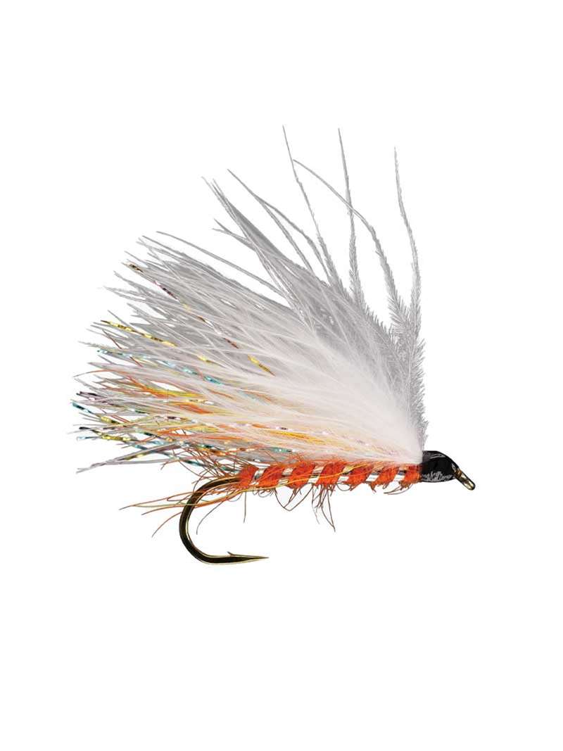The Montreal Floozy is tied on a size 8 hook with dubbing, tinsel, bucktail, krystal flash and marabou. The fly measures at 1.5" in length.