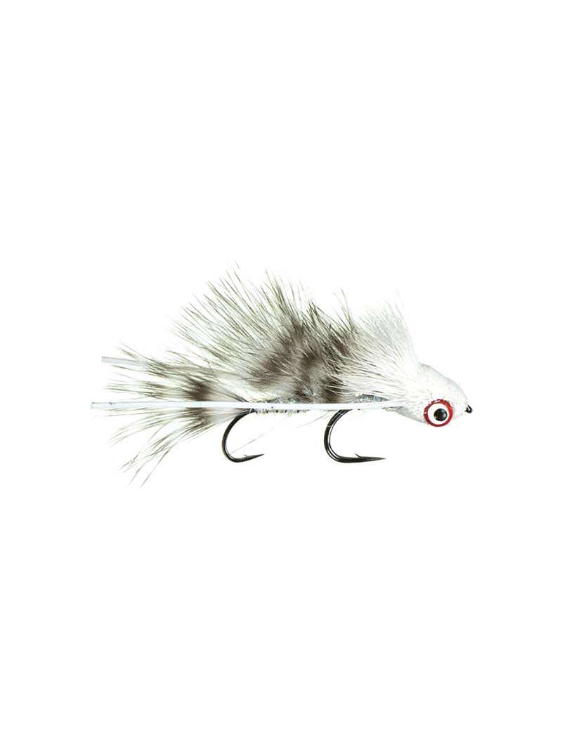 Galloup's Micro Dungeon- #10-barred white. This fly is articulated of course and approximately 2" long.