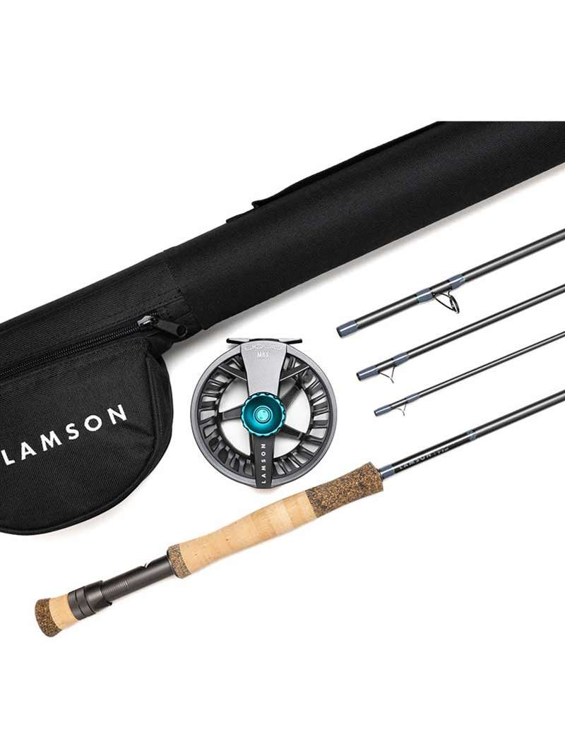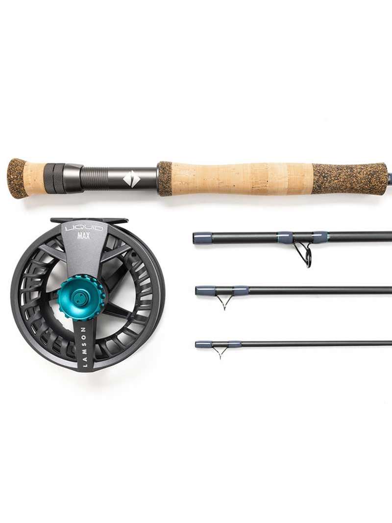Lamson Liquid Max 9' 7wt 4 piece "Unlined" outfit includes Liquid Max Fly Rod, Liquid Max Fly Reel and Rod Reel Combo Case. You need to buy a fly line....and we'll put it on for you with the right amount of backing. You just need to choose the backing color during checkout.
