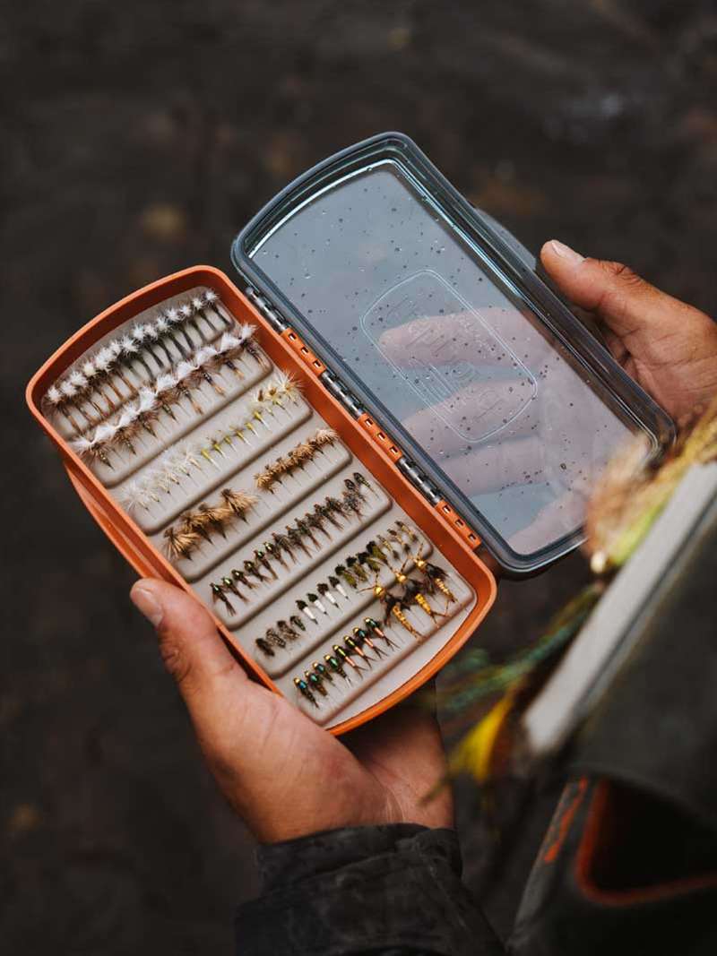 the go-to. This waterproof, grab-and-go system offers the same rugged, recycled construction as the original, with a transparent lid that provides an unobstructed view of your lineup. Sized to hold up to 105 flies, whether you're loading technical dries, hoppers, or an inshore saltwater assortment, they’ll remain bone dry and ready to go. With our signature waterproof gasket and a 100% recycled plastic shell, it is an easy choice for the box you will reach for every time.