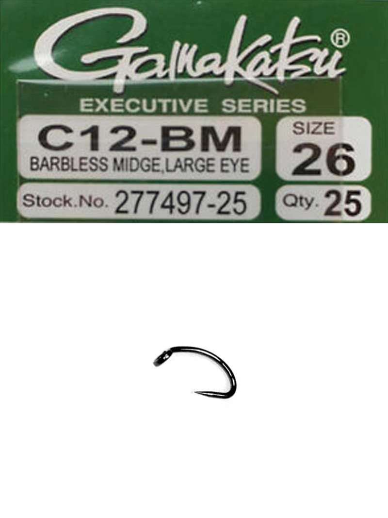 The Gamakatsu C12-BM Barbless Midge hook is available in sizes #26, #28 and #30. These hooks feature a large eye and come 25 per pack.