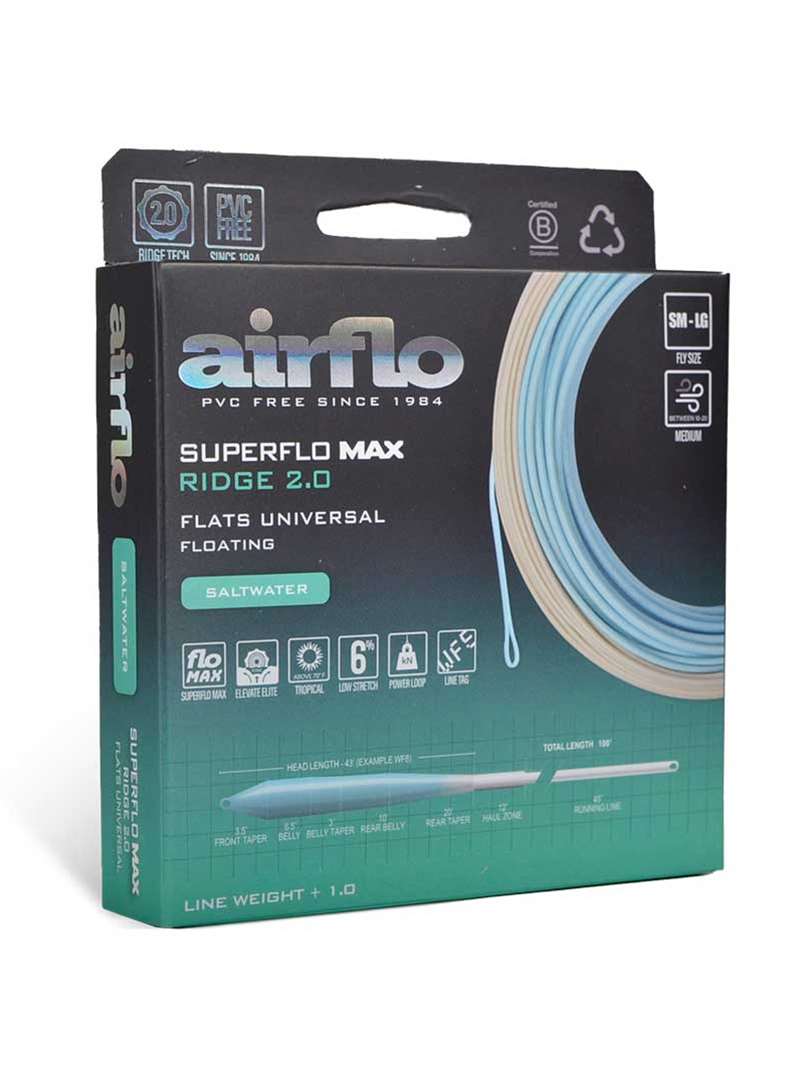 The Airflo Superflo Max Ridge 2.0 Universal Flats Taper Fly Line is certainly one of the most versatile flats lines ever created. Heavy crabs into gnarly winds one day, and bonefish patterns into a light breeze the next. When you don’t know what to expect, a do-it-all flats line is the answer. Designed to load quickly, the short belly and long rear taper create the most versatile line in the Airflo saltwater flats range. This is the taper for the vast majority of conditions, fly rods, and anglers.