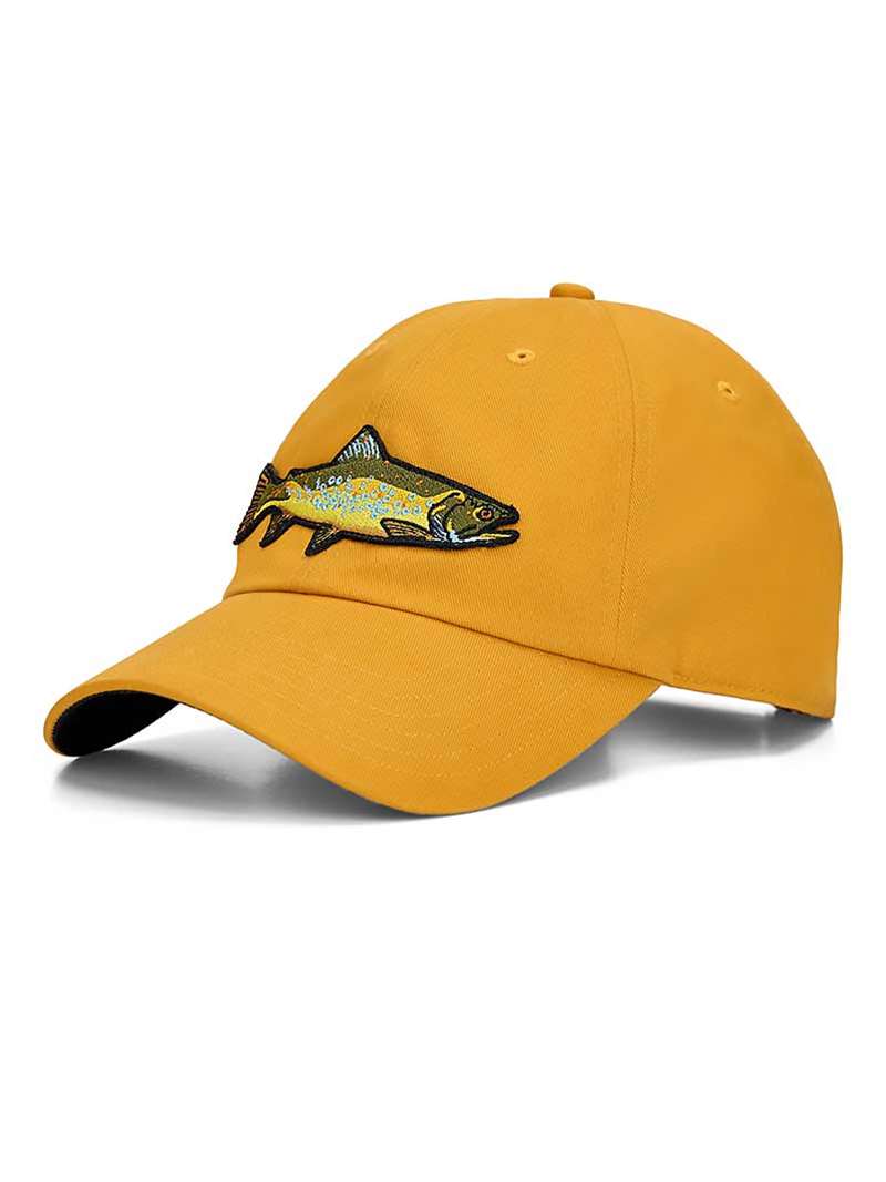 The Simms Single Haul Cap - item # 122211348 in the color Amaretto with the Simms Rainbow Trout Patch (looks more like a Brown?).