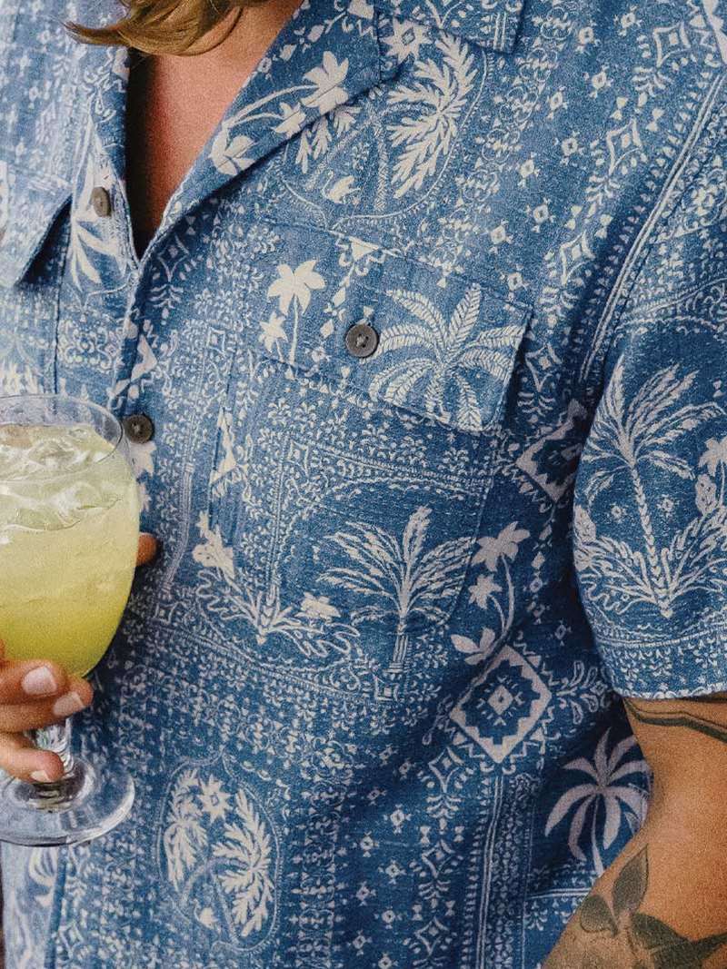 Howler Brothers Shores Club Shirt: Palmetto Prophecy: Storm Blue, item number 129326S-PAL