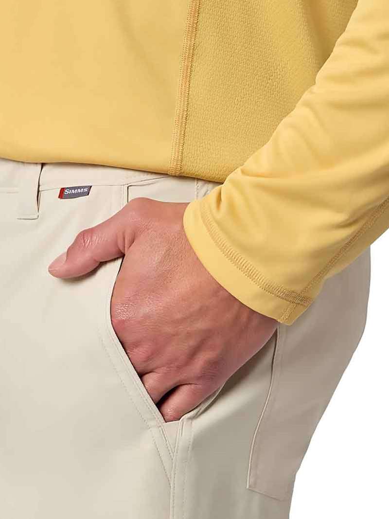 * Two front drop-in hand pockets and two back pockets. Back right pocket zips closed to secure essentials. All pocket bags are built with water drainage, allowing the pants to dry quickly