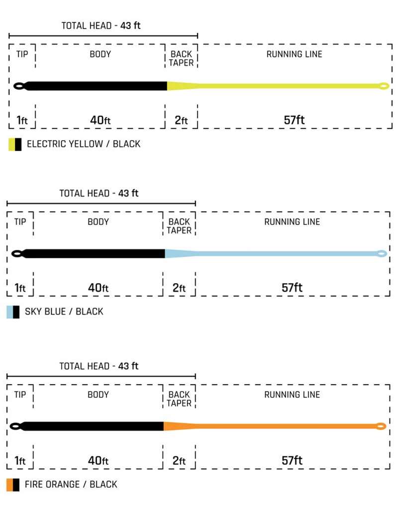 The new Cortland Kelly Galloup Rock Bottom Fly Line is available in 200 grain- 5/6 wt (electric yellow running line), 250 grain- 6/7 wt (sky blue running line) and 300 grain- 7/8 wt (fire orange running line).