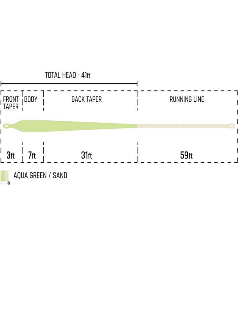 This line features a monofilament core and their signature tropic plus coating for withstanding the hottest temperatures while still remaining slick, supple and fast shooting. The aqua green and sand color combination distinguishes taper change and is stealthy out on the flats.