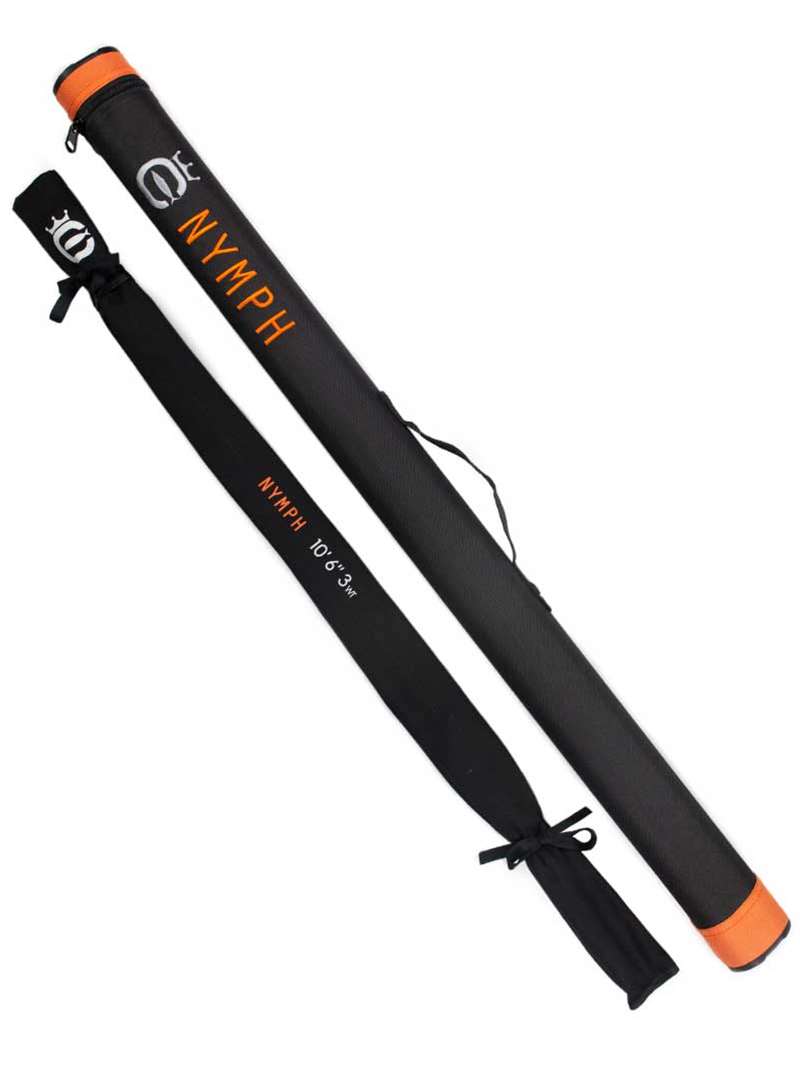 Nymph Series fly rods feature over-sized light wire single foot guides for easier passage of fly line, monofilament and knots. All ferrules and guides are coated with highly durable epoxy, resisting cracks, flex stress and excessive knots. Finished with alignment dots, size specific rod bags and a protective cordura rod tube.