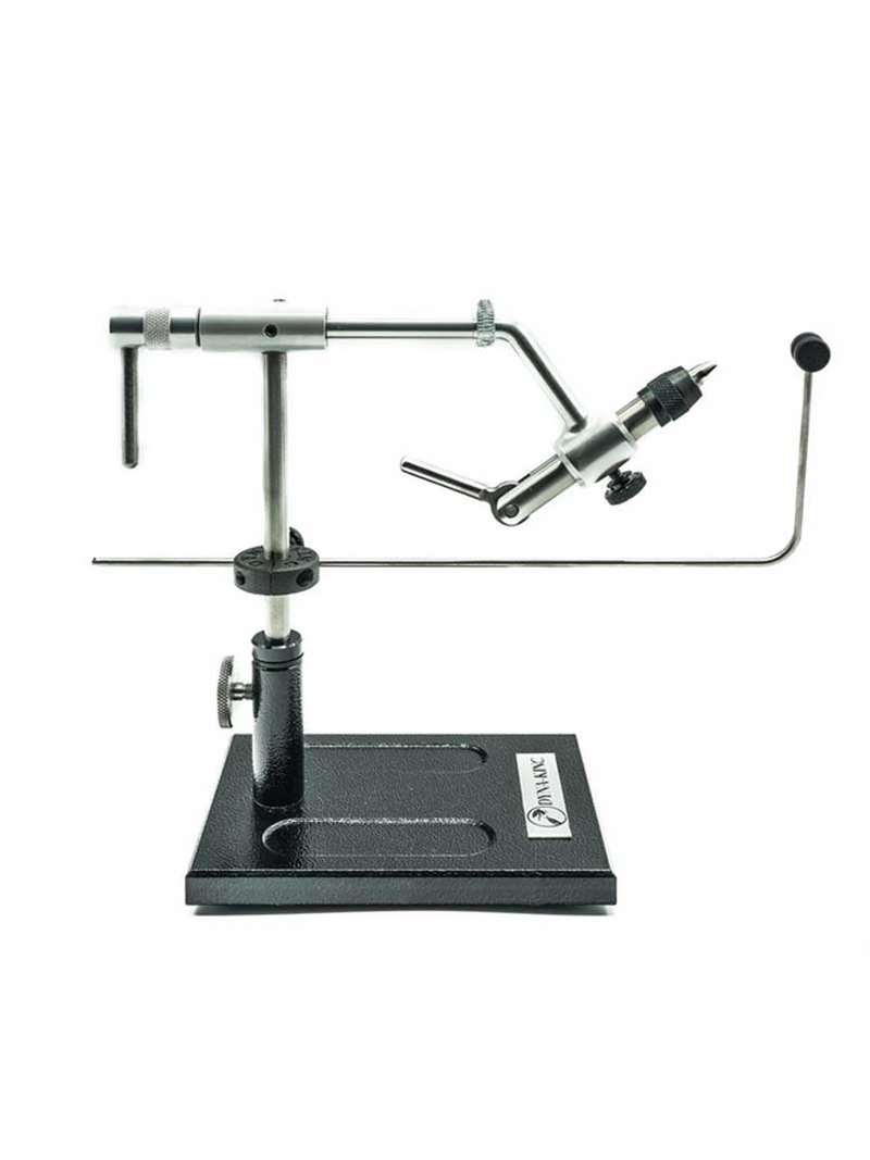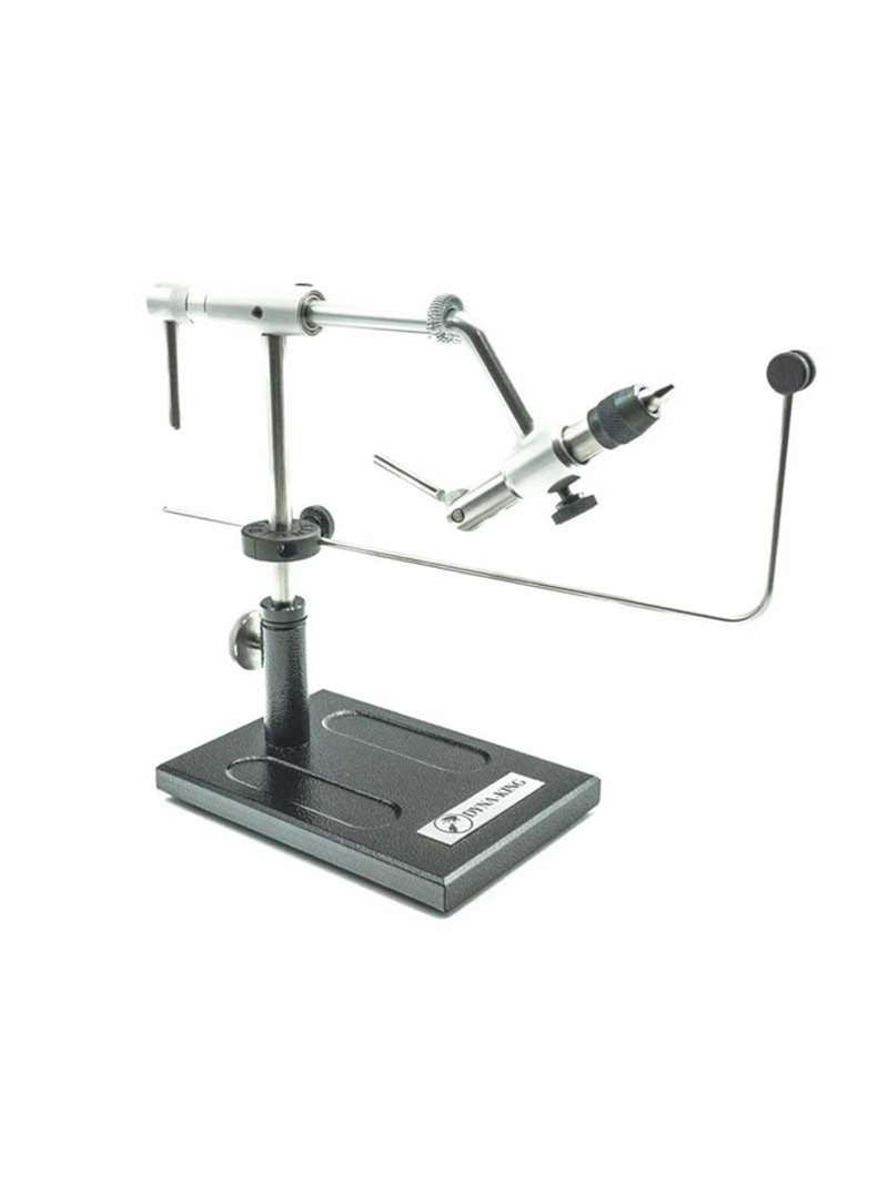 The Dyna-King Trekker Fly Tying Vise is precision made of hardened steel and holds hooks sized from 8/0 to 24. A full rotary vise with rotational lock and drag adjustment to set the rotation to your tying preference.